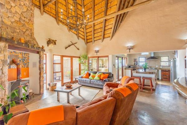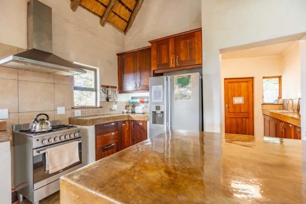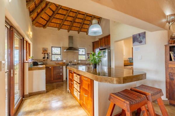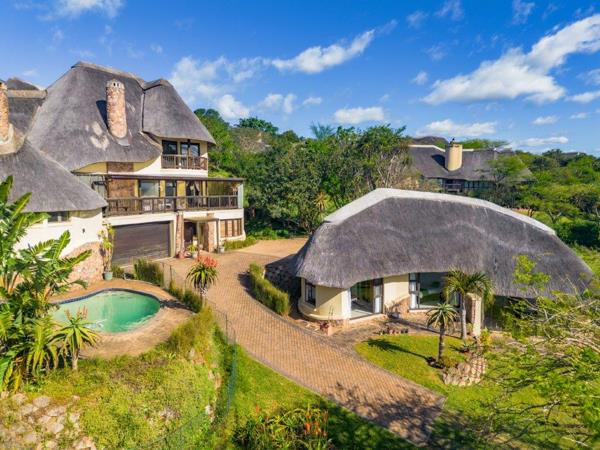 This outstanding custom designed home on the renowned PheZulu Estate has luxury African game lodge appeal with whimsical views over the valley of 1000 Hills due to its prime location on the estate. This gorgeous home has four spacious bedrooms and three bathrooms as well as an additional 2 bedroom cottage that could be used for extended family or to continue the current income generating concern. This house boasts 2 dining areas, kitchen with gas stove and scullery and a fabulous private bar area, topped only by a living area that spills onto and extensive verandah from which one can observe the spectacular sunsets, sip sundowners or start-gaze the most impressive starry night skies available! Come and see this simply sublime slice of the PheZulu Property Pie!