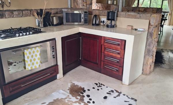 This gorgeous, custom-designed, luxurious home on the exclusive PheZulu Estate boasts 3 bedrooms plus two guest rooms, 3 bathrooms, guest loo and is an structural artistic masterpiece of elaborate stonework showcasing skillfully located skylights that create the sought after illusion of being part of game reserve landscape.