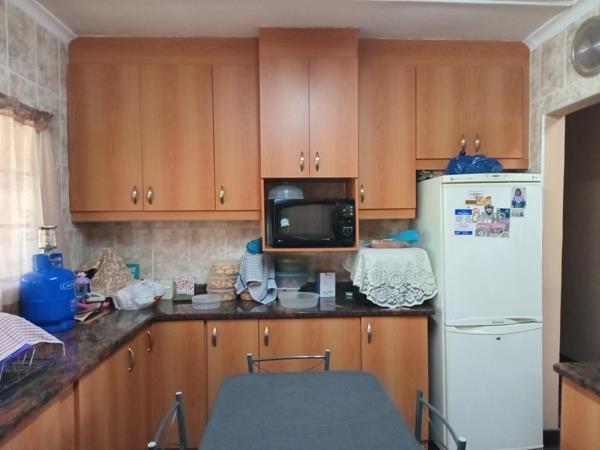 Three bedrooms,lounge,dining room,kitchen with cupboards,toilet and bathroom.