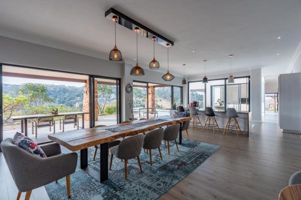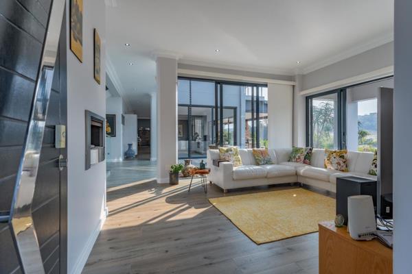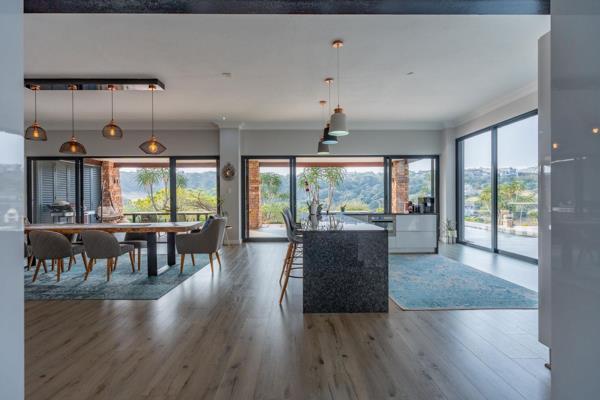 On Show by appointment. Nestled in the prestigious Cotswold Downs Estate, in Woodchester Village, this elevated, north-facing property offers panoramic views of the golf course and the estate. Designed with a contemporary minimalist aesthetic, the home features expansive glass windows that flood the space with natural light and create a seamless indoor-outdoor flow. The open-plan layout includes two spacious lounges downstairs, perfect for both relaxing and entertaining. The versatile kitchen boasts two cooking areas, a high-tech design, a walk-in pantry, and ample cupboard space, ideal for culinary enthusiasts. Step outside to a generous verandah and pool area, perfect for dining and leisure with friends and family alike.