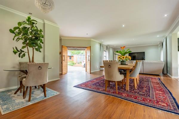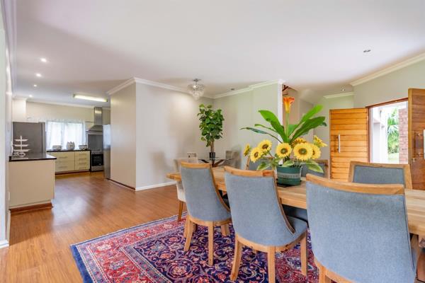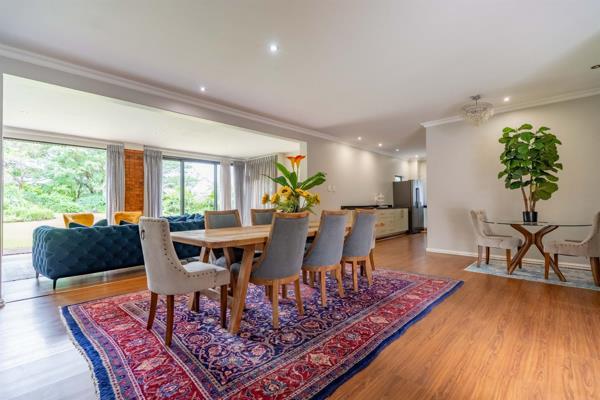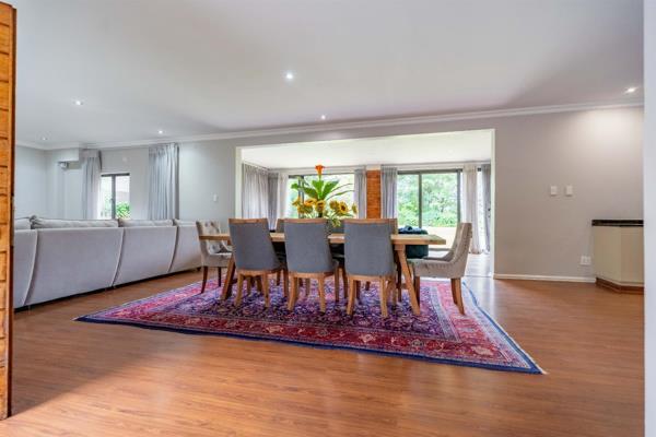 Contact the agent for access. This spacious north-facing double-storey home offers abundant living space with a seamless flow between its open-plan living areas. Boasting five generously sized bedrooms and four bathrooms, it provides ample accommodation for a family. The dining area and two lounges effortlessly connect to the kitchen, which is designed for convenience and style, featuring a large pantry, granite countertops, and a scullery. The front lounge opens through sliding doors to reveal an expansive, flat garden, perfect for outdoor activities. Best of all, this property is positioned right on the front line of the golf course.