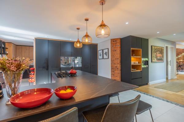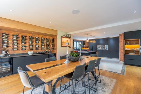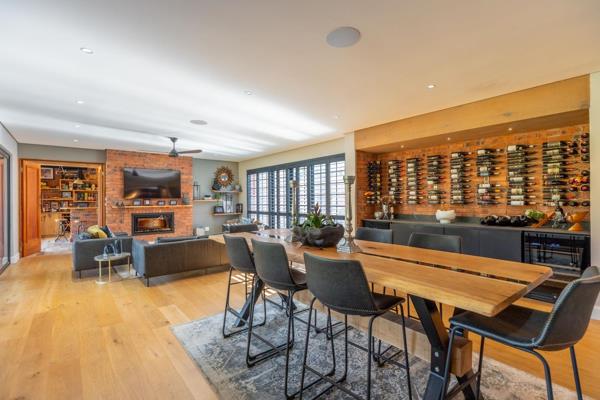 The heart of this home is its open-plan living area, designed for both comfort and sophistication. The elegant dining area invites memorable gatherings, and the cozy TV lounge, complete with a fireplace, is perfect for relaxing evenings. The sophisticated bar area, equipped with a fridge, ice machine, and wine storage, transitions effortlessly to the outdoor entertainment space with heated pool,creating the perfect setting for inside-outside living. Imagine hosting alfresco dinners on the patio, complete with a pizza oven, gas braai, and slow combustion stove, all while enjoying the beautiful South African climate.