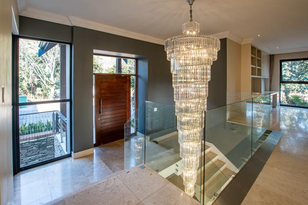 This truly amazing home is a statement of modern living at its finest. Set in a quiet panhandle in the exclusive Cotswold Downs Golf Estate this property offers lovely views and accommodation over two levels. The entrance hall with a large pendant chandelier welcomes you in and invites you to indulge your senses. Down a few steps is the tastefully appointed family lounge with gas fireplace, a built in unit with prep sink and bar fridge. This lounge opens into a large enclosed patio which has frameless glass doors to the deck and sparkling pool. The tv lounge to the side features a built in wall unit and a pocket door closing it off for movies nights at home. The open plan kitchen with ceasarstone tops has a large wood bar counter for casual dining, a freestanding gas stove and ample built in cupboards and the scullery is plumbed for two appliance and leads through to the double automated garage. The dining area is off the kitchen and has doors to the deck and garden. Marble tiles throughout the living area and kitchen.. The internal patio gives access to the wine cellar and is a lovely space for entertaining with a slide window giving direct access to the kitchen. Also on this level is a guest toilet and a bedroom with an en-suite bathroom.