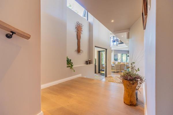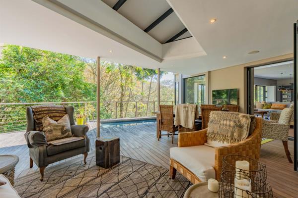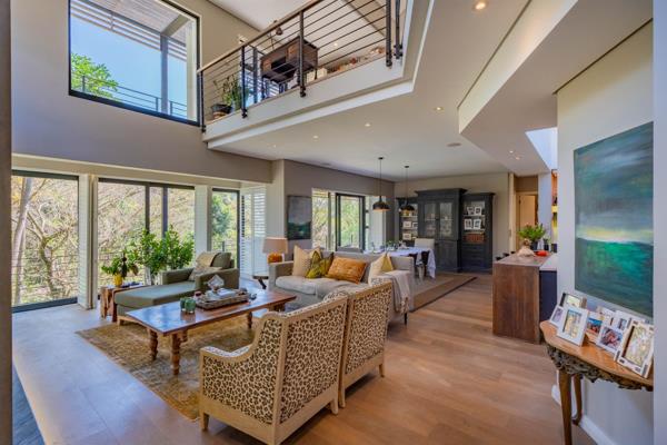 Privately tucked away in a quiet cul-de-sac in the sought-after Cotswold Downs Estate, this exceptional split-level home offers an unrivalled sense of peace, seclusion, and natural beauty. Surrounded by indigenous trees, lush foliage, and the gentle sound of a nearby stream, its a true sanctuary where the forest feels like an extension of your living space. Elevated and thoughtfully positioned to maximise views and privacy, the home embraces its setting with expansive glass elements, timber decks, and a seamless indoor-outdoor flow. From the striking engineered oak finishes, and gorgeous sky-lights to the elegant American shutters, every detail exudes warmth and refined style.