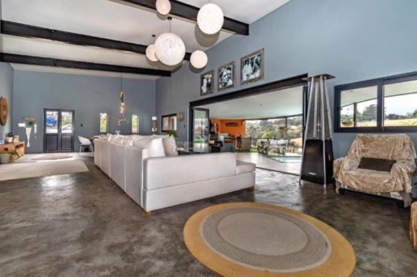 Modern Elegance: Sleek screed flooring flows throughout the home, enhancing its contemporary aesthetic and creating a seamless look.