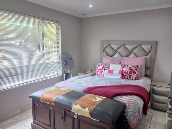 Down the passage, you''ll find a separate bathroom featuring bath and shower, ideal for unwinding after a long day. The main bedroom is spacious, complete with built-in cupboards and lovely views of the front garden, and your very own ensuite bathroom with toilet and shower. There are an additional two spacious rooms also with views of the back garden and also include built in cupboards.