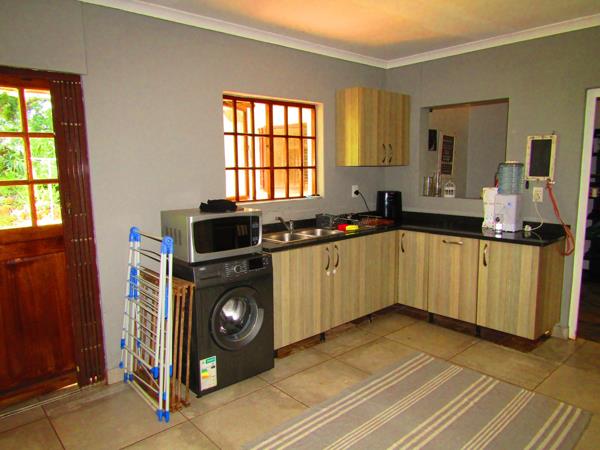 The ground floor area has a large lounge, two spacious bedrooms and bathroom, a very large kitchen with courtyard and an appealing undercover braai area overlooking the pool.