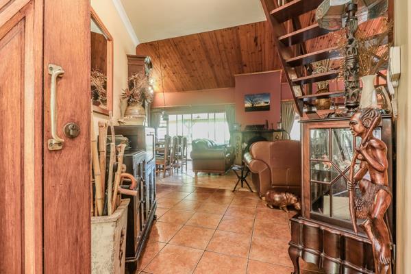 The pub, open plan dining room & lounge with feature fireplace offer warmth, charm & opens onto a deep all weather verandah with built braai. Accessed via large sliding glass doors, It runs the entire length of the house & extends onto the garden with pool & feature waterfall.