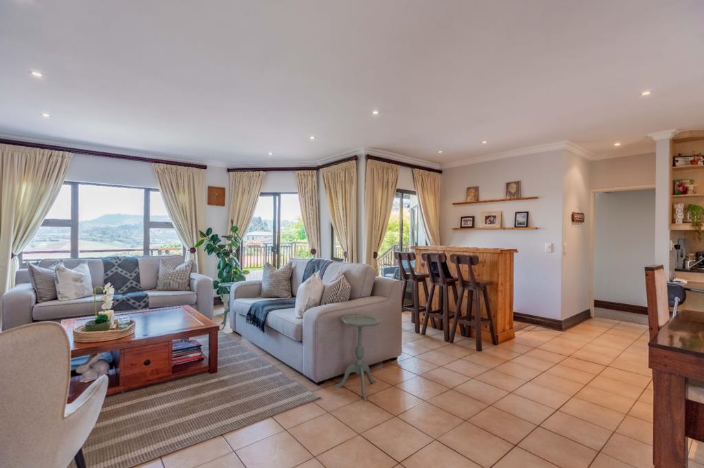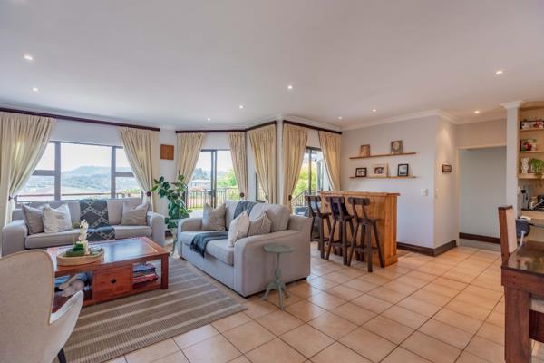 The spacious open-plan living area flows seamlessly from a well-fitted kitchen with scullery and direct access to the double garageideal for easy family living. Step onto the expansive deck and take in the breathtaking views over Sunset Valley, the perfect spot for relaxing sundowners.