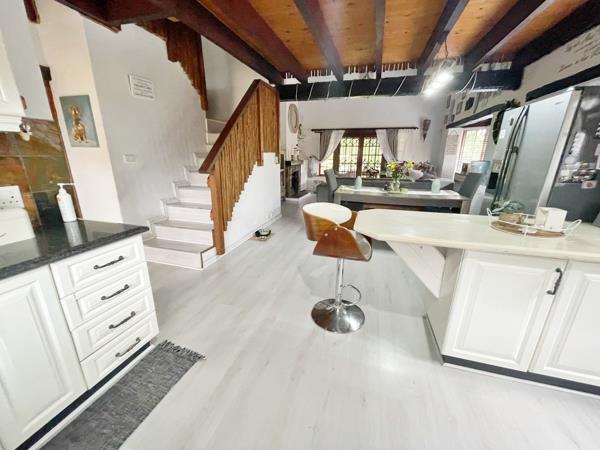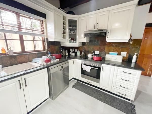 Picture yourself on the covered patio, taking a moment to unwind while overlooking the lovely garden. With a built-in braai, its a perfect spot for hosting friends or simply enjoying a cozy evening under the stars.