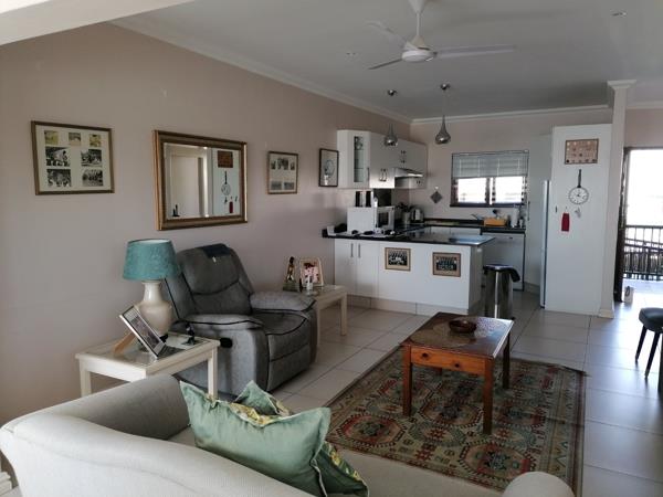 This spacious apartment has a large, living area, extending into a sun-lounge with fitted blinds and views over the exclusive Cotswold Golf Estate. Fibre and DSTV connections, but pay your own SP.