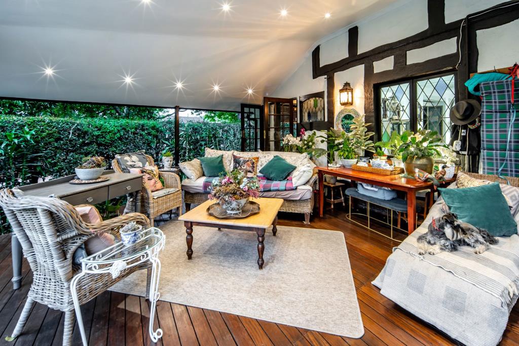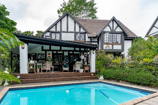 Fairytales & fireplaces. Nestled in the Camelot Golf Estate is a home...chandeliers, vaulted ceilings, baronial fireplace....encased in a beautiful English country garden of roses, lavender, ferns and butterfly trees.