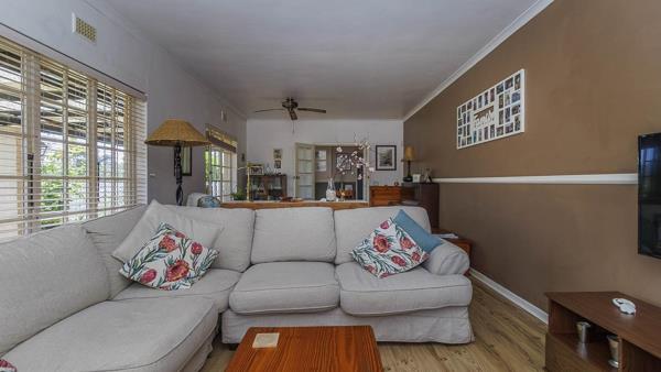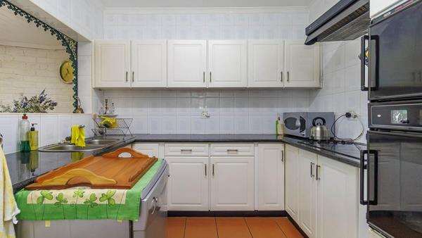 The layout of this residence offers flexibility as the integrated lounge area is large enough to accommodate a dining area whilst the separate dining room can function as an office. The elegant kitchen is generously sized with attractive white cabinetry and a practical serving hatch that connects seamlessly to the dining arealounge. There is also a scullery.