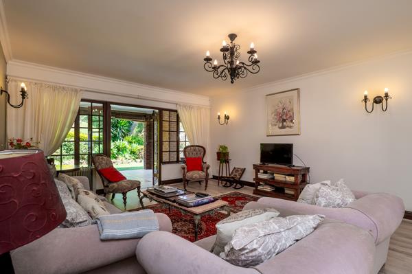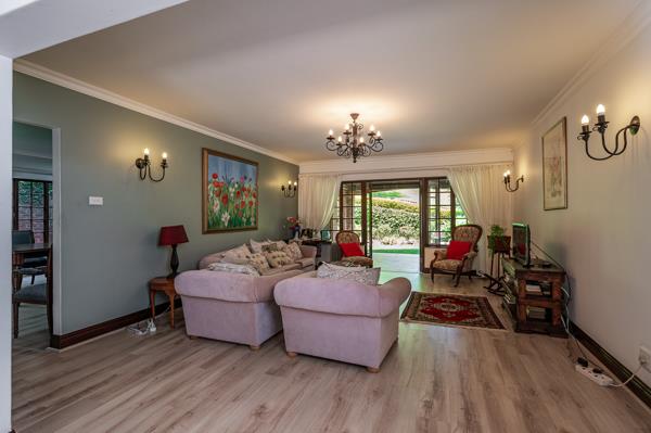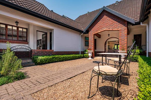 Discover easy living in this spacious stepless 3-bedroom, 3-bathroom simplex located in the sought-after Camelot Country Estate. Thoughtfully designed in a U-shape, the home features two bedrooms on one wing and a private third bedroom on the opposite side, ideal for guests or extended family. Generous open-plan lounge and dining areas flow seamlessly onto a covered verandah overlooking the beautifully landscaped garden, creating an inviting space for entertaining or relaxing. The well-appointed kitchen is a dream for any gourmet chef, complete with rich wood cabinetry, granite countertops, an eye-level oven, pantry, and an extended scullery area.