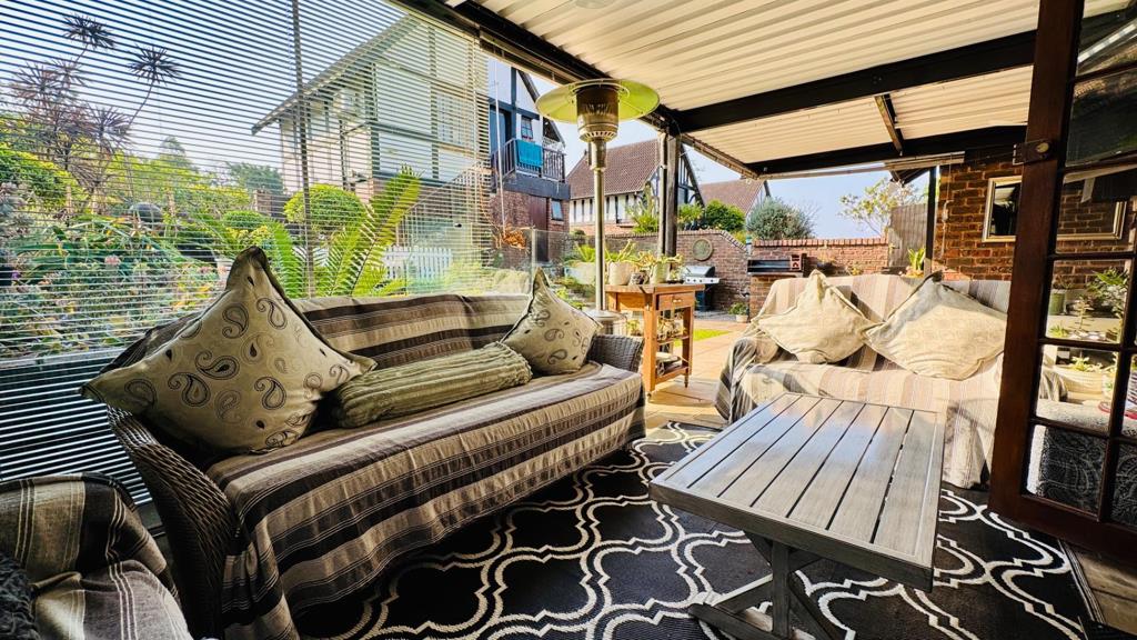 The formal lounge welcomes you with generous open spaces and French doors leading to the back garden, overlooking pristine communal grounds. Flowing seamlessly from the main lounge, the dining area features a five-seater dining setting and wine display, while the adjoining sunroom captures the afternoon sun the perfect place to enjoy wind down with something on the rocks.