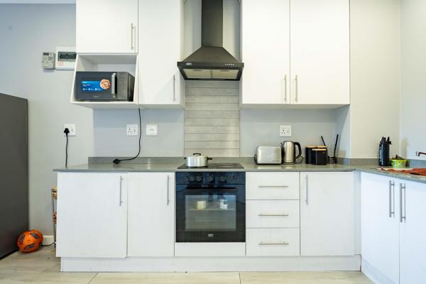 This elegant third-floor apartment offers a thoughtfully designed open-plan layout, complemented by sophisticated laminate flooring throughout. Accommodation includes two spacious bedrooms, each equipped with built-in cupboards. The main bedroom features a private en-suite bathroom with a shower, while the second bathroom is fitted with a convenient shower-over-bath configuration. The modern kitchen is appointed with granite countertops, an undercounter oven, and a sleek glass hob.