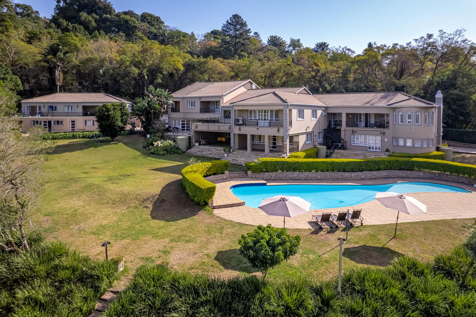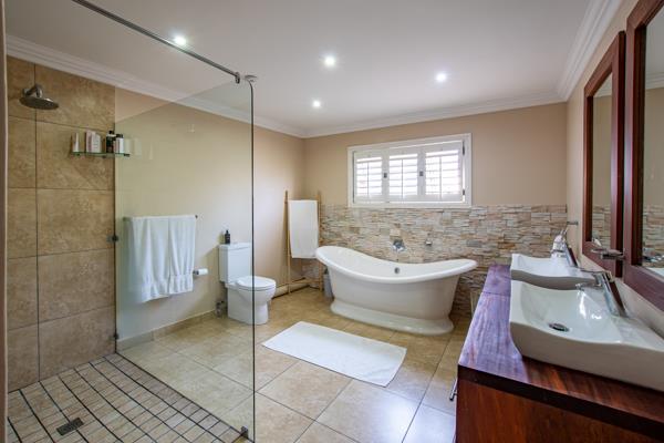 Step outside to discover three patios overlooking lush gardens and a sparkling pool, where you can unwind with a book, sip your morning coffee, or host a function .The home boasts twelve luxurious en-suite bedrooms with the two ground-floor rooms equipped with kitchenettes for added convenience. For additional privacy or rental income, two charming cottages are set in an elevated position, perfectly situated to enjoy the surrounding beauty. Families will love the floodlit tennis court and childrens playground. The property is equipped with essential amenities, including two double garages, a laundry room, and staff accommodation, plus three more double garages below the main house. With a 40 kVA generator, six water tanks, and a greywater system, your comfort and sustainability are fully catered for. Whether you are looking for a private residence or an investment with great returns this property is a must-see.