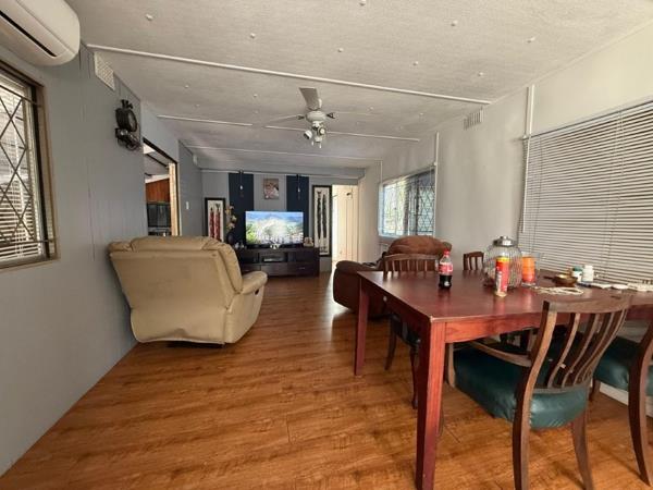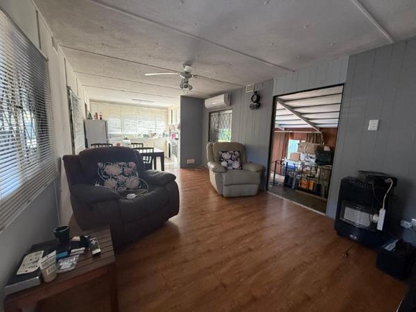 This property boasts 2 bedrooms, 1 bathroom, a fitted kitchen, lounge with laminated flooring and an airconditioner, a dining room and an enlcosed varanda. It also has a covered carport and the garden is easy to manage and overlooks the valley with luscious vegetation. The entire house is fitted with blinds, except the front veranda.