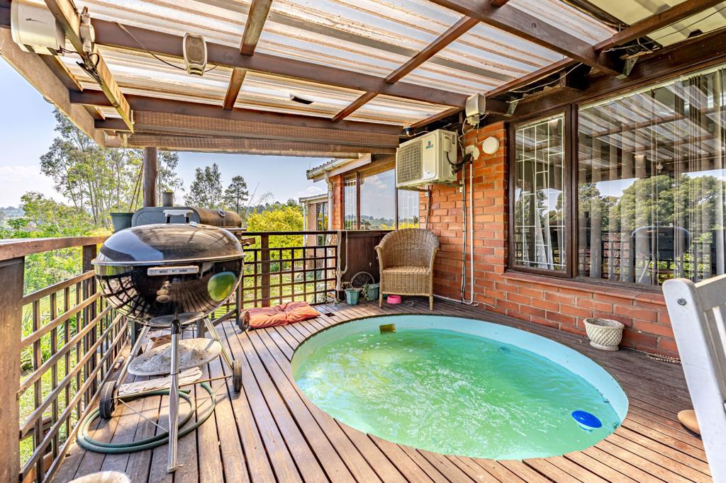 Lovely Spacious Home with Scenic Views Includes Shares in Inchanga Park Country Village. . Enjoy a relaxed lifestyle with stunning conservancy views in this well maintained home. The home offers 2 double bedrooms, both with walk-in closets, plus a study that can serve as a 3 rd bedroom. Two stylish en-suite bathrooms-one with a shower, the other with a bath. The open plan living areas flow from the entrance hall through to the dining and lounge spaces, opening onto a covered entertainment deck with jacuzzi, patio and fully fenced garden. The modern kitchen is fitted with granite tops, ample cupboards, a breakfast bar, gas hob, eye-level oven and an interleading laundry leading to the back garden and storage shed. A single automated garage offers direct access into the home.