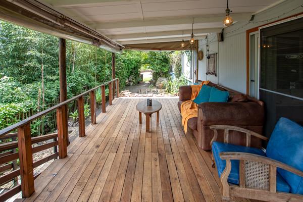 This immaculate 200sqm home offers the perfect blend of space, comfort and relaxed lifestyle. Designed for easy living and entertaining, the home boasts a spacious open-plan lounge and dining area with a cosy fireplace, leading out onto a covered deck which is fitted with weather blinds and overlooks the sparkling pool with a rock-faced water feature - an entertainer''s delight. The modern kitchen is thoughtfully designed, featuring granite countertops, a breakfast bar, prep bowl, extractor fan, gas hob/electric oven and ample cupboard space. This flows into a scullery, office area and a versatile utility room/laundry which has direct access to the tandem covered carport. Accommodation includes 2 well-appointed bedrooms. The main is especially spacious, fitted with an air conditioner and large windows bringing in natural light. There are 2 stylish bathrooms - the en-suite with a walk-in shower, vanity and toilet while the family bathroom is full of charm with a bath, vanity and toilet. The outdoor space is truly special - the landscaped private garden includes 2 wooden garden sheds, a small workshop area, a view deck overlooking the greenbelt, storage, a water tank, water feature and a tranquil fish pond.