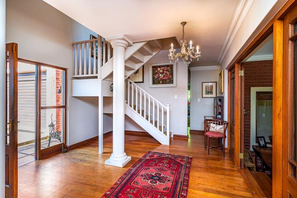 Perfectly suited for those seeking the convenience of town living without sacrificing the charm and serenity of the countryside, this exceptional residence evokes the feeling of a Midlands farm retreat. A charming pebbled driveway leads you to a spacious triple garage offering generous storage and parking space. Above the garage is a fully self-contained flatlet with its own private entrance, featuring an expansive open-plan layout with lounge, dining, bedroom, and a fully equipped kitchen, complete with a separate toilet and shower. Large windows flood the space with natural light and offer sweeping views over the paddocks where horses graze peacefully. The main house welcomes you through elegant double doors into a haven of space, sophistication, and warmth. A mix of screeded and Rhodesian mahogany floors guide you through multiple beautifully appointed living and entertaining areasfrom a formal dining room adjacent to the chef''s kitchen, to a cosy TV lounge centred around a feature gas fireplace. Expansive doors lead out to enclosed verandas on both sides, embracing the charm of country living and offering all-weather enjoyment. The kitchen is a culinary delight, fitted with top-end appliances, a gas stove, and luxurious granite countertops. It is designed to be as social as it is functional, effortlessly flowing into the heart of the home. Tucked privately to the side, the bedroom wing ensures peace and comfort for residents and guests alike. Upstairs, the grand main suite features double-volume ceilings, plush wool carpets, extensive built-in cupboards, and a Juliet balcony overlooking the lush garden, pool, and deck. A pyjama lounge and dressing area leads into the luxurious en-suite bathroom, which includes a chandelier-lit ball-and-claw bathtub and separate shower. The remaining bedrooms downstairs each open onto the wraparound veranda and share a stylish family bathroom. A well-appointed guest toilet and a full laundry room connect to a service courtyard that links to the garages and staff ablutions. This discreet service area leads around to a secluded corner perfect for a vegetable garden, bonsai collection, or orchid house, embraced by thriving indigenous landscaping and local wildlife. This exceptional property has been thoughtfully upgraded with six solar panels and four batteries, both ducted and conventional air-conditioning, a fenced and perfectly proportioned garden, JoJo tanks, and every element one could desire in a home that offers character, charm, and the soul of the countryside. This is a rare and extraordinary opportunity to own a timeless home in one of Hillcrests most exclusive addresses. Dont miss your chance to make it yourscall top agent Cara Ridl today for an exclusive viewing of this truly exceptional property.