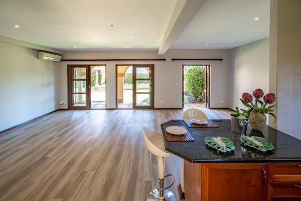 The Plantations security village offers a lifestyle that reflects an Italian village with cobbled walkways, shaded avenues, village squares and absolute security. Working parents are well catered for as there is a professional creche within walking distance from this appealing home. This unit is a gem as it has recently been renovated and presents a modern interior which contrasts well with the traditional Tuscan exterior. You will find fashionable laminated flooring and open plan living areas. The granite top kitchen is well equipped and includes an under-counter oven and hob. The open plan living area is spacious and versatile and leads out onto the covered patio and level lawn. This unit offers 4 large bedrooms or 3 bedrooms plus a valuable work from home space, as well as 3 bathrooms, two of which are full, offering both a bath and shower.. 3 of the 4 bedrooms have their own private balcony. In addition, the unit is equipped with 3 air conditioners for your comfort.