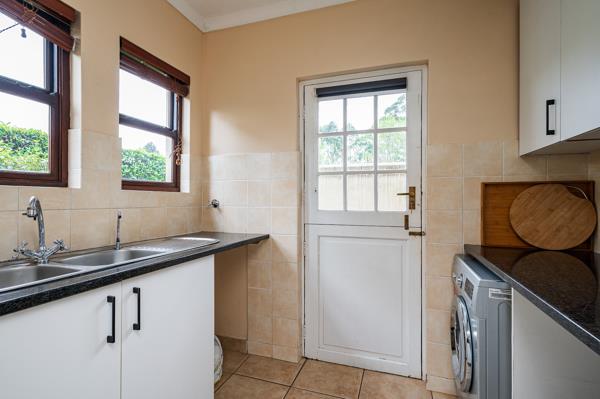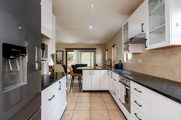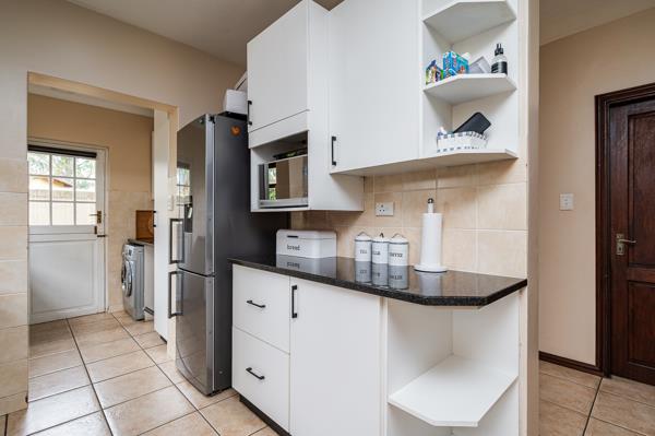 Set within the serene surrounds of a Tuscan-styled estate, this charming home welcomes you with a spacious driveway, a double garage, with additional storage space. A convenient garage door also provides direct access to the garden. Step inside to an inviting entrance hall that flows into the open-plan lounge and modern kitchen, complete with a separate scullery for functionality. The lounge opens through sliding doors to a covered patio, overlooking a beautifully landscaped, level garden, perfect for both relaxation and entertaining.