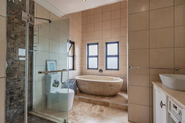 Open plan kitchen with gas hob and separate scullery which leads onto the dining area and covered patio to maximize those beautiful balmy evenings.