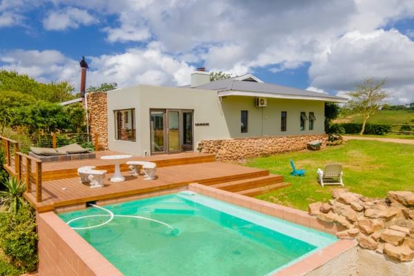 Lovely spacious four bedroom home with three bathrooms of with two are en-suite , magnificent open plan living area with fireplace, perfect for those cosy winter evenings. Which leads out onto a stunning entertainment area with built in bar and braai. Stepping out onto a wooden deck with jacuzzi and splash pool, overlooking the breath taking views. This masterchef kitchen is fitted with granite tops, loads of cupboards, gas hob and oven perfect for entertaining. Double garage with access straight into the house.