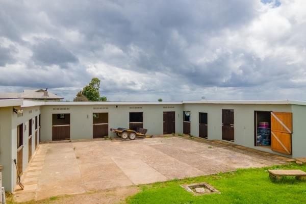 Tucked away on the side of the property are 10 stables, tack and feed room. Staff accomodation and ablutions. This property is set above road level and offers six good sized paddocks, mostly on level ground, with sand arena.