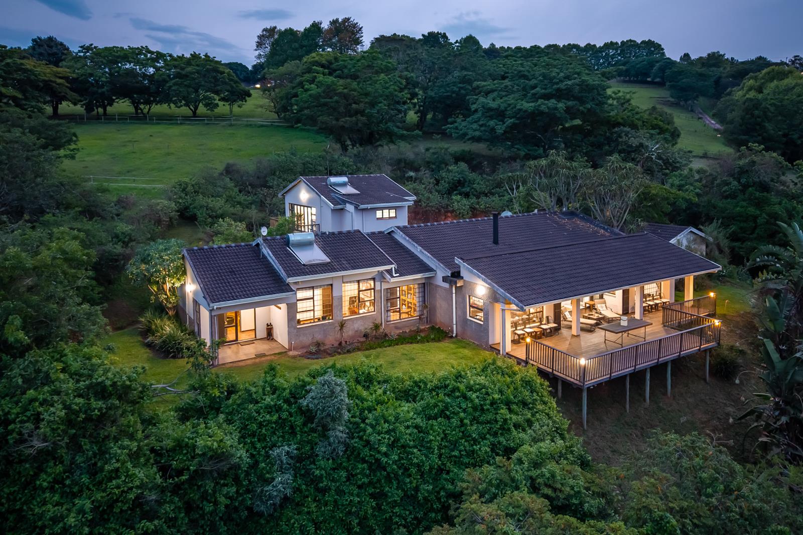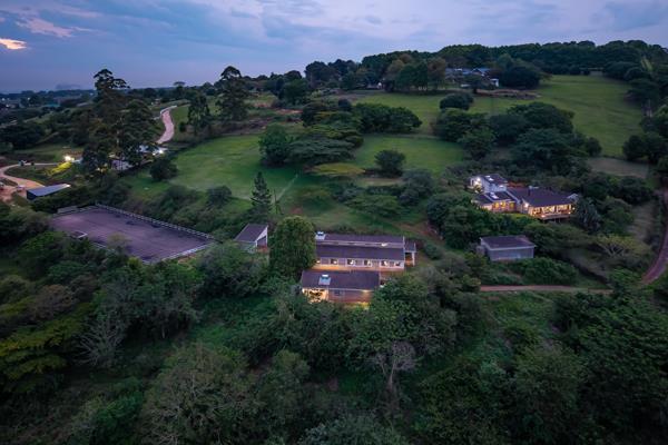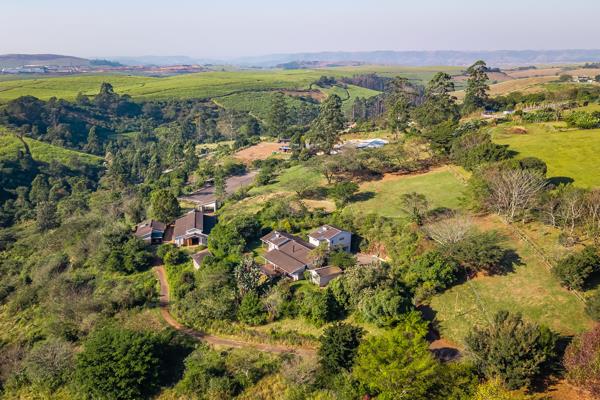 Hidden in its own private sanctuary amidst the untamed beauty of the African bushveld, Pigeonwood Farm is an extraordinary 10-acre equestrian estate in the heart of Summerveld. With sweeping views over the Assagay Valley and direct access to cane field outrides, this hand-designed, architect-crafted retreat offers a rare opportunity to live in perfect harmony with nature, horses, and luxury. The top five acres are masterfully developed, anchored by a magnificent open-plan main home that captures the essence of South African country livinggrand entrance hall, spacious living areas, wood-burning fireplace, and a seamless flow between the gourmet kitchen and expansive entertainment deck. Three elegant bedrooms, including a main en-suite that opens to a tranquil zen garden, offer refined comfort, while a study and a secure in-house tack room provide practicality and flexibility. Every detail has been thoughtfully considered, from solar geysers and JoJo tanks to full aluminium finishes, two inverters, and eight CCTV cameras. A separate, sun-drenched flatlet with its own kitchenette and veranda above the garage makes for the ideal guest retreat or extended family living.