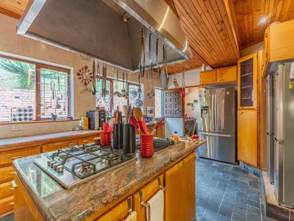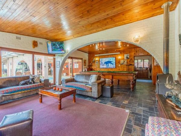 Inside, unwind in the indoor entertainment lounge, fitted with a beautiful full-size Union Billiards snooker table, bar, and open-plan lounge that gazes out over the gardens and a peaceful dam perfect for bass fishing, meditation, or morning coffee as the mist rises over the water.