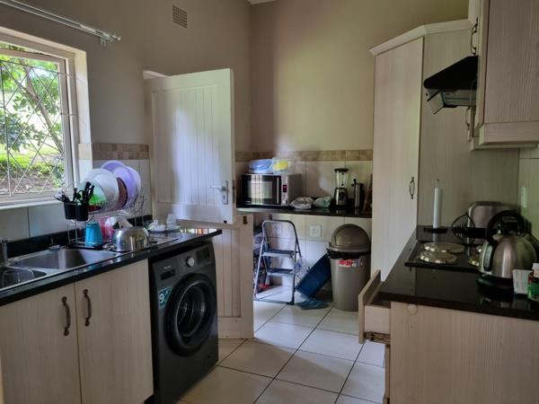 The kitchen is modern with granite counter-tops, an electric stove and under-counter oven with a large pantry cupboard. The lounge is spacious with a dining area that opens up to a lovely sunny patio area overlooking a neat garden.