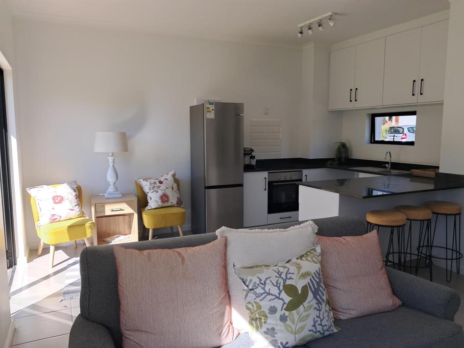 This brand new contemporary 2-bedroom apartment within a secure gated community harmonizes urban convenience with natural serenity. Recently completed and awaits a new owner. This unit offers an open plan living area which leads you to the open plan kitchen finished with cupboard space, under cover oven and stove, glass hob, a breakfast nook, granite tops, and a place for either a front loader washing machine or dishwasher. It offers an open living area with an easy flow to the lounge and dining area.. Enjoy a direct access to the sunny patio and serene garden views.