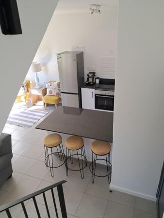 There are two bedrooms upstairs both with sliding fitted cupboards. The master room features an en-suite and balcony which overlooks the greenbelt and good sunrise. The second bathroom is fully fitted shower, toilet, and basin. Two allocated parking bays, one covered, and the other opened with ample guests parking. This apartment truly reflects the lock-up-and-go lifestyle. It provides the perfect opportunity for monthly rental income. The estate is pet friendly and allows 2 pets - both cats and dogs welcome with permission (however the garden is currently not fenced). This well-managed and secure estate offers 24-hour guarded security at the entrance, and a bonus is that this complex has facial recognition technology plus an electric perimeter fence.