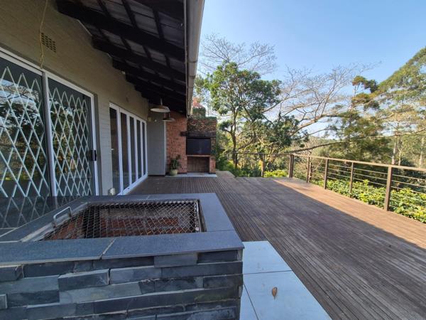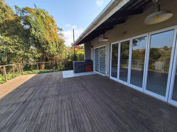 Step into the heart of the home through the entrance hall into the stylish open-plan living area. The modern kitchen has lovely finishes and a separate scullery. Spacious lounge and dining area and large sliding doors which opens out to an expansive wooden entertainment deck, complete with built-in braai and breathtaking views over the garden, sparkling pool, and jungle gym an entertainers dream and a paradise for kids.