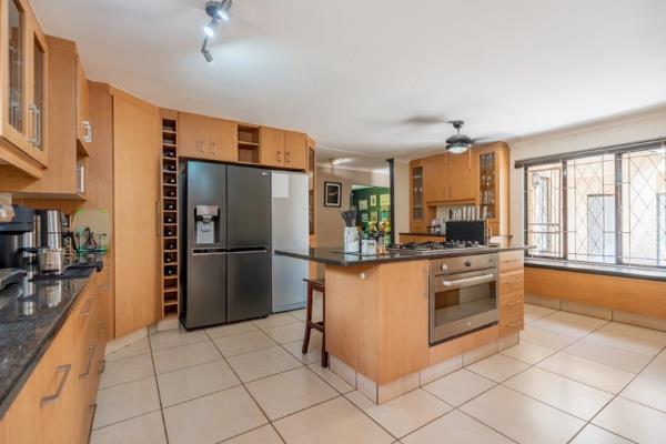 This spacious home is perfectly positioned in Waterfall and offers the rare bonus of beautiful sea views. Recently upgraded, the property boasts an ultra-modern kitchen with granite countertops and a separate scullery ideal for both everyday living and entertaining. Lush lawns surround the swimming pool, creating a perfect setting for relaxed Sunday braais with family and friends. Three automated garages provide secure parking along with ample additional storage space. The main bedroom is a true retreat, complete with a stylish en-suite bathroom featuring Italian-inspired his-and-hers basins. A wonderful find in a lovely neighbourhood !