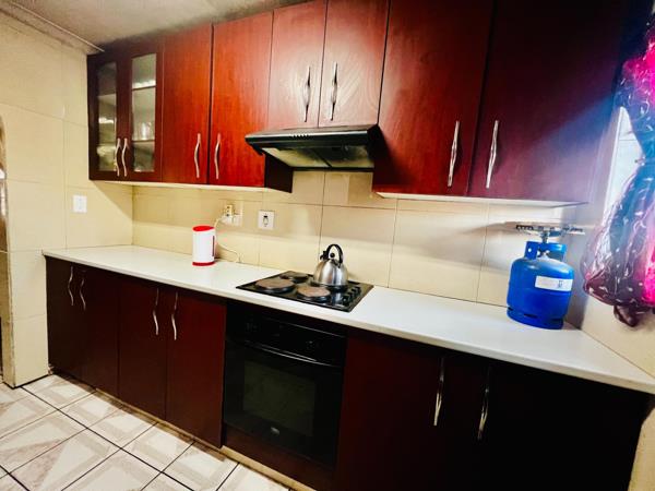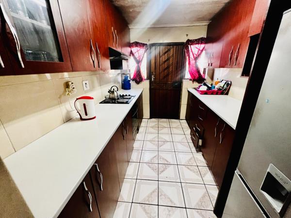 This home is new on the market .The home is located in Kwamashu .The home has tiled floors and ceiling board finishes throughout .The kitchen is fully fitted with built-in cupboards that have a granite top finish .The kitchen has a built-in stove ,oven and hob .The bedrooms are spacious and offer a lot of living space .The bathroom has a bath tub ,sink and toilet .The yard space is really spcious and it accommodates further expansions to the home .The home is fenced all around and it has a main access gate .Enjoy parking atleast eight vehicles on your yard space .