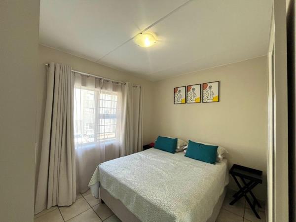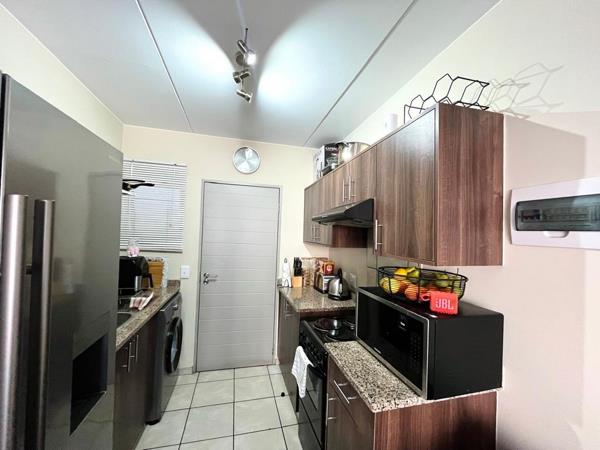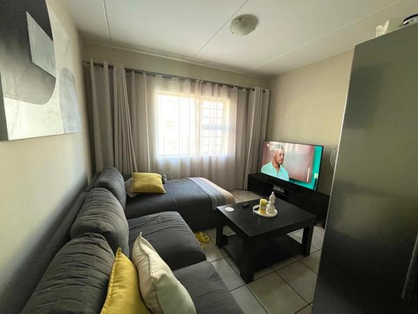 Open Plan Fitted Kitchen with a stylish feel and modern touch of granite tops, Double bowl sink, Space for washing machine, Spacious Lounge Area for your comfort and leisure, 2 Well-sized Bedrooms including Built in cupboards in both bedrooms for ample storage in a modern design. A full-size bathroom including a bathtub, shower, toilet, and basin. Tiled flooring.