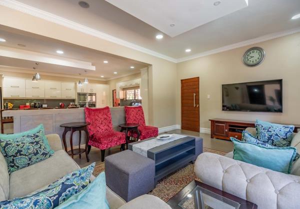 Enjoy the easy flow of the open-plan lounge and dining room, filled with natural light and ideal for entertaining. A sliding door opens directly to the outdoor entertainment area, perfect for weekend braais or relaxed family gatherings.