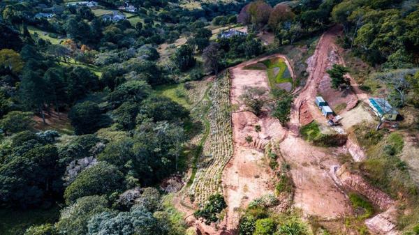 Six acres of glorious land in Everton. Platforms have been prepared for a large home, tennis court, and pool area with river frontage. Planted with indigenous plants. All required assessments and reports have been met. Plans for an amazing modern home are available. Foliage has grown since these pics were taken. Properties in Everton are required to be at least 800 sqm. Country living in the heart of nature, offering prolific bird life & beautiful walks!