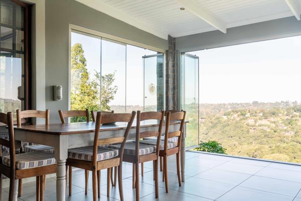 This stunner home offers you the most unbelievable views of the Kloof Gorge! The home has 4 bedrooms and 3 bathrooms and heated towel rails and heat pumps for the geysers. There is a lovely open plan flow between living spaces and the lounges are huge! The seamless glass doors on the verandah lounge bring in all those astounding views! You have a study, hobby room and a storeroom.
