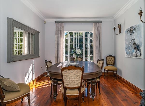This is one of those homes that just ticks every box in a 10 unit complex! This 4 Story home is set on a park-like mature garden. 90 sqm automated garages leading upstairs to the entrance hall with a smaller sitting lounge with a fireplace, second large 90sqm family lounge with fireplace and dining room, Solid wooden floors throughout the home. Private patio area with small splash pool for entertaining. Wait till you see this kitchen!!!!!....... The size of a double garage with large centre island with gas stove and electric oven, 2nd built in oven and 2 warmer drawers, plenty cupboard space with separate scullery is perfect for the entertainer who loves to cook for the family, leading to a Partially covered large courtyard and storeroom outside (can easily be converted into domestic quarters or teen pad) The upper level of the house contains 3 well sized bedrooms, the main bedroom, (which is an enormous suite that includes large closet area as well as a fantastic full en-suite and Balcony). The third bedroom also has an ensuite (Shower, Toilet, Basin) Going up to the 4th level is an attic for storage or could be used as a 4th bedroom. Registered extent 416 but is 456 sqm under roof