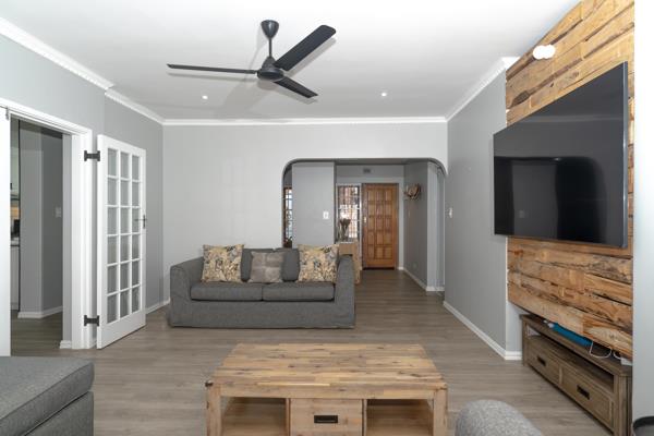 The entire unit has recently been renovated with contemporary finishes and fixtures. Upon entering the property, you are met with an abundance of light with the open plan layout with newly installed laminated flooring. The kitchen is designed for the home cook to enjoy with a gas stove and a breakfast counter for those intimate family mornings. The property offers 2 lounges, one that has been fitted with built in cupboards so that it can be converted into an additional bedroom. The dining room has aluminum sliding doors that flows seamlessly to the large, under covered patio with an easy maintainable garden, perfect for kids or pets to run around. The view is breathtaking and stretches all the way to the coast-perfect for entertaining or to enjoy a tranquil sunset.