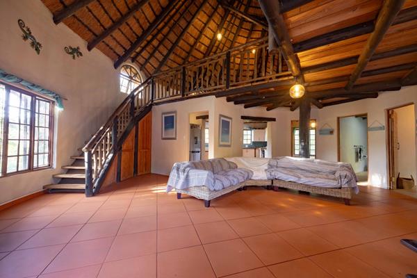 Tucked away from the rush of everyday life, this hidden gem offers a welcome escape where the sound of birdsong replaces the hum of traffic. The thatched main house offers a spacious lounge where a gas fireplace waits to chase away the evening chill. The open-plan design invites connection from the laughter shared over breakfast in the dining area to the aroma of fresh coffee drifting from the large, modern kitchen with its separate laundry.
