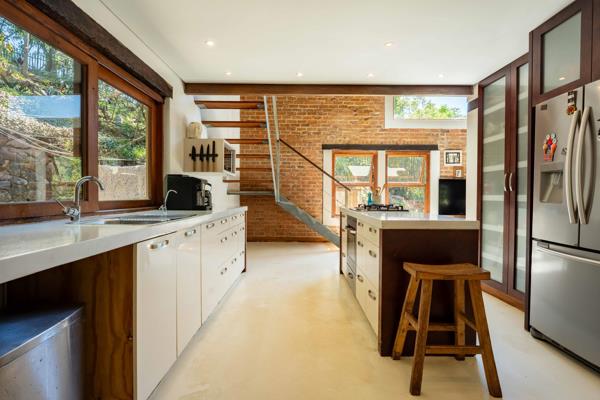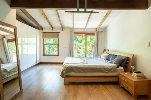 The main house features light-filled, open-plan living areas with a striking double-volume lounge and a cozy fireplace. A versatile mezzanine level adds flexibility ideal as a work-from-home space, reading nook, or creative studio.