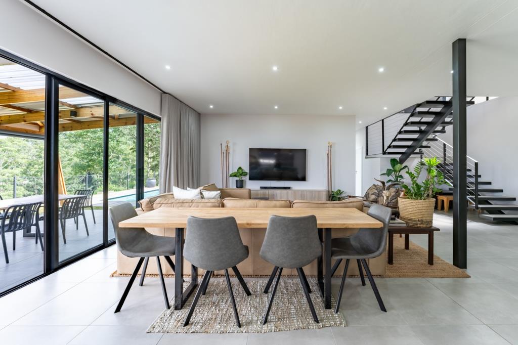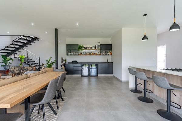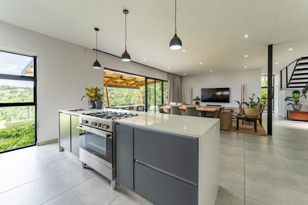 SOLE MANDATE | Introducing Edgecliff Views. Brand new freestanding homes in the heart of Kloof. This newly built double-level home offers a modern lifestyle. The lower level features an open-plan layout that seamlessly combines a stylish kitchen, dining area, and living room. The living space extends to a covered patio with a built-in braai, providing elevated views, perfect for entertaining. Outside, a garden leads to a private bonfire area.