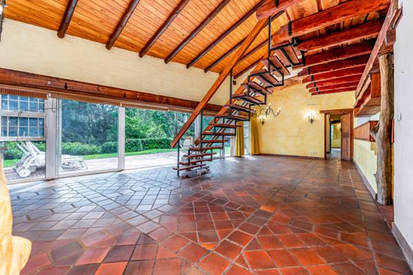 The 403m2 home is charming and consists of 4 bedrooms and a loft entertainment area. A cosy charming lounge with a wood fireplace ideal those cold chilly nights.