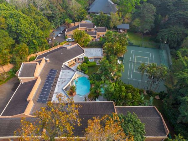A stunning kitchen blends beauty & practical function, boasting quartz counter tops, a 5 burner SMEG hob & electric oven. The large laundry/scullery leads from the kitchen offering plenty of cupboard space along with a second pantry. Tucked in a sunny alcove alongside the kitchen is a snug breakfast table. Soaring ceilings & glass doors between living area & verandah, give a wonderful sense of light & space! Another wing extends to a destination in itself, offering a squash court, gym, steam room, spa bath & conveniently placed shower, toilet & basin. A room with ping pong table & lounge area, could be another lounge in itself. Beneath is a 2nd lounge with pub & fireplace, snooker table & dart board. Glass doors lead out to a braai area & open patio. Across from this wing is a gorgeous independent, 1 bedroom cottage - well-designed offering open plan living. This stunning home has garaging for 4 vehicles & a further 3 under- cover parking. 4 secure visitors parking outside the garage. An 18-panel solar system & a 3 phase 12KvA invertor system, with 2x 5KvA lithium batteries, powers the whole house & cottage. Fiber internet reception serves the whole home & garden. All fully fenced with, an automated gate, is private, & impeccably maintained- this is more than a home, it''s a lifestyle! All contents of the house & cottage are NEGOTIABLE.