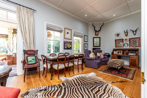 Must see House, Cottage & Flatlet. A show for indigenous gardens, a nature lovers paradise of birds and butterflies. A beautiful family double story home set on 3 acres of level established garden. The double entrance doors open to high ceilings & wooden floors, quietly blending with the rooms to the left and right.